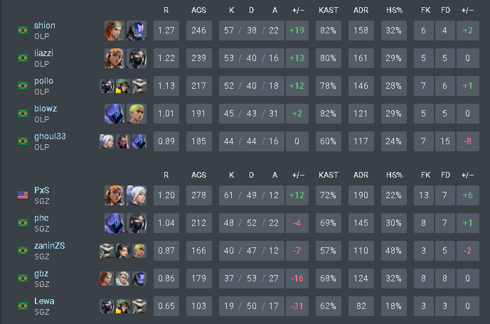 OLIMPO vence a SAGAZ por 2 a 1 e está a uma vitória de retornar ao Gamers Club VALORANT VCB 2024 Etapa 2. Veja os números da série: