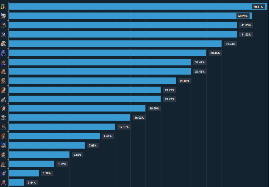 Por fim, como a agente mais escolhida nos confrontos, a Killjoy levou o título com 110 picks. Além disso, a sentinela teve uma taxa de escolha de 70.51% durante a competição. Confira o ranking: