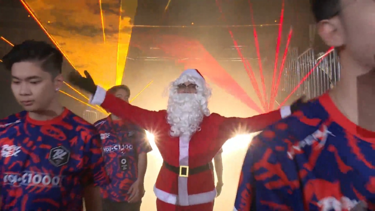 Em clima de natal, profissional sobe em palco vestido de papai noel