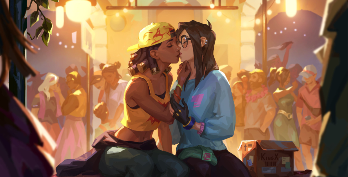 Arte com as personagens se beijando é…