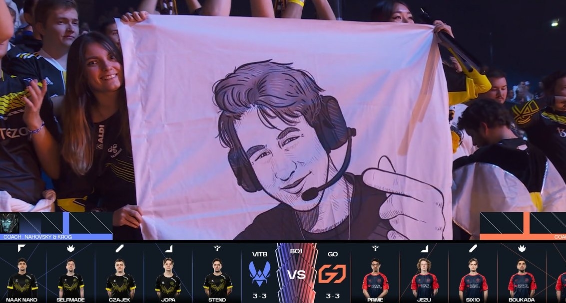 Torcida da Vitality exibe bandeirão em homenagem à Twisten em partida de LOL